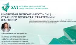 Результаты исследований ВолНЦ РАН, полученные в рамках реализации гранта РНФ № 25-28-01422 «Концептуальные основы и практики достижения цифрового благополучия старшего поколения в сфере потребления» были представлены руководителем проекта, ведущим научным сотрудником, заведующим Центром социально-демографических исследований к.э.н. Марией Андреевной Груздевой на XVI Международной Грушинской социологической конференции, которая состоялась в Москве 26–27 марта 2026 года. Основным организатором традиционно выступил ВЦИОМ (Всероссийский центр изучения общественного мнения). Мероприятие объединило исследователей, ученых, представителей органов власти, бизнеса, НКО, журналистов и стало площадкой для изучения общественного мнения, понимания и объяснения общественных процессов и явлений.