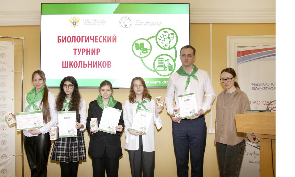 Победителем Биологического турнира школьников стала команда «Долгоножковые ложноносики» из МАОУ «Средняя общеобразовательная школа с углубленным изучением отдельных предметов № 8» г. Вологды (руководитель команды: учитель биологии и географии И.А. Кочуло). Второго места была удостоена команда «Биолегенды» (Частная школа «Другая школа», г. Вологда), третьего – команды «Майские лопушки» (МБОУ ВМО «Майская средняя школа имени А.К. Панкратова», Вологодский муниципальный округ) и «Химбиши» (МАОУ «Средняя общеобразовательная школа № 37 имени Маршала Советского Союза И.С. Конева», г. Вологда).