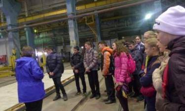 Затем экскурсовод пригласила школьников в цех, где рассказала об основных сферах деятельности завода: выполнение строительных, монтажных, ремонтных услуг, строительство объектов социальной инфраструктуры (больницы, школы, детские сады).