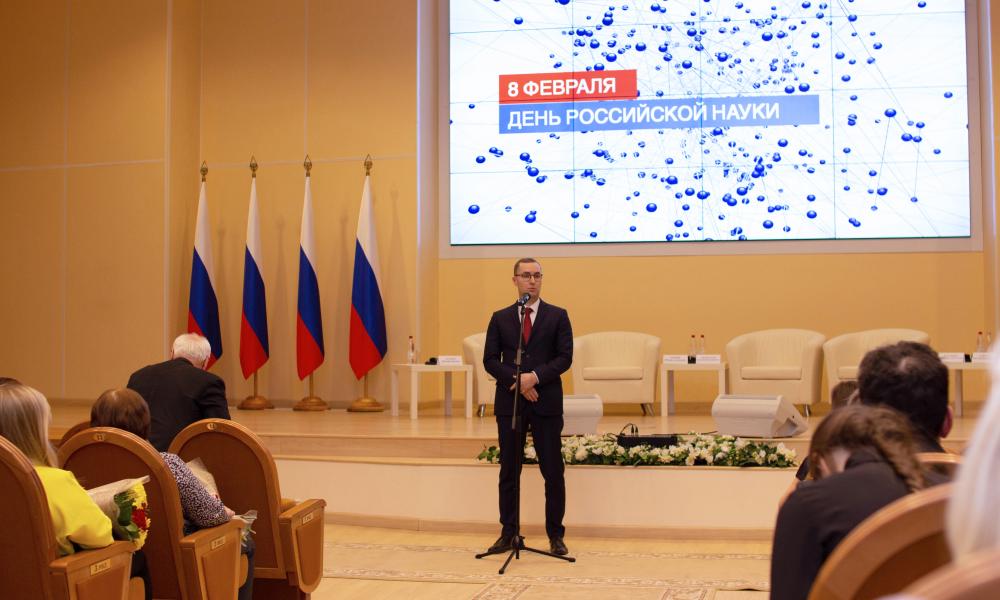 Открыл мероприятие заместитель Губернатора Виталий Валерьевич Тушинов, который поздравил всех представителей научной общественности с праздником и отметил, что наука в России впервые объявлена национальным проектом и все регионы, включая Вологодскую область, разрабатывают направления вхождения в данный проект.