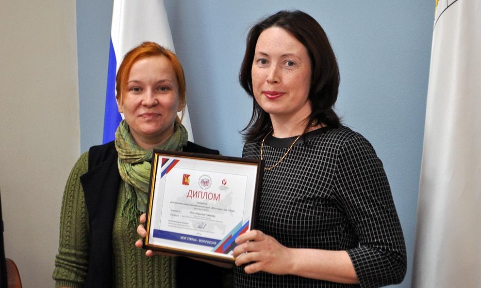 Автор проекта «Интернет-школа Вологодского научного центра Российской академии наук» младший научный сотрудник ВолНЦ РАН Ольга Юрьевна Рыбичева была признана победителем регионального этапа конкурса «Моя страна – моя Россия». Награждение победителей состоялось 24 мая 2019 года в Правительстве области.