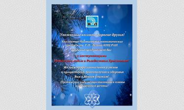 Уважаемые коллеги, дорогие друзья! Коллектив Института экономических проблем им. Г.П. Лузина КНЦ РАН сердечно поздравляем вас с наступающими Новым 2021 годом и Рождеством Христовым! Желаем профессиональных успехов и процветания, благополучия и здоровья вам и вашим близким! Пусть в 2021 году осуществляются планы и сбываются мечты!
