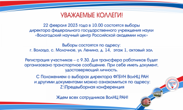 22 февраля 2023 года в 10.00 состоятся выборы директора федерального государственного учреждения науки «Вологодский научный центр Российской академии наук»